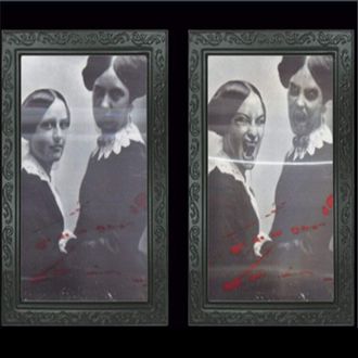 Добрые, милые, открытые лица на картине под определенным ракурсом преображаются в жуткие рожи демонов, вурдалаков, вампиров, мертвецов и прочей нечисти. Страшная картина станет отличным интерьерным решением для вечеринки Хеллоуин, для создания соответствующей атмосферы дома, в ресторане, клубе или просто для розыгрыша друзей