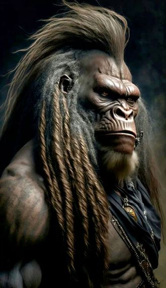 Воинственная горилла и индеец. Фотопечать по дереву. Украшение интерьера.