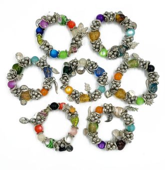 ЖЕНСКИЙ БРАСЛЕТ 990 руб. В КОРЗИНУ Поделиться: Изящные женские браслеты насыщенные атмосферой Каппадокии. Стальные грозди и крупные стеклянные бусины с разнообразными подвесками на силиконовой нити. Страна: Турция Ручная работа