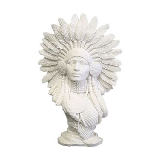 Фигурка - бюст коренной американской индианки в головном уборе в виде венца из орлиных перьев. Статуэтка девушки - воина в красивом исполнении и высокой детализацией, прекрасно впишется в ваш интерьер.