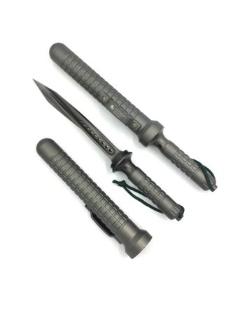 Он имеет три острых кромки, закрученных в точку-острие. Изготовлен Jagdkommando из нержавеющей стали, Рифленая рукоять изготовлена из алюминия. Внутри рукоять полая, с закручивающейся резьбовой крышкой-заглушкой. В этой полости можно хранить выживальщическую мелочевку (шнур, спички, таблетки и т.д.) В крышке рукояти имеется отверстие с темляком.