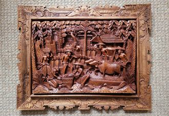 ПАННО ЛЮДИ И БУЙВОЛЫ 24990 руб. В КОРЗИНУ Поделиться: Панно в рамке вырезано из одного куска дерева. Страна: Индонезия, Бали Дерево: суар Размер: 65 х 51 см Ручная работа