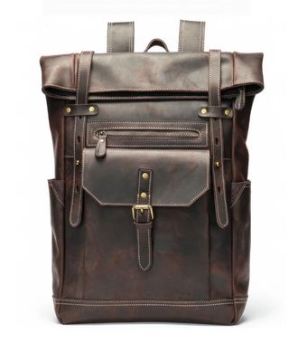 Оригинальный рюкзак в винтажном стиле с потёртостями, изготовлен из высококачественной воловьей кожи. Рюкзак имеет полную развернутую длину 55 см, за счёт чего может вместить большие предметы. Имеет 3 кармана на молнии и 3 на магнитах.