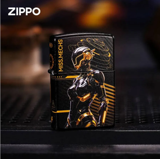 Zippo Miss Mechs - стильная коллекционная зажигалка для тех, кто ценит киберпанк и футуристический дизайн. Черный корпус с детализированным изображением механической девушки и золотыми акцентами. Культовая надежность Zippo в сочетании с уникальным стилем. Поставляется без топлива.